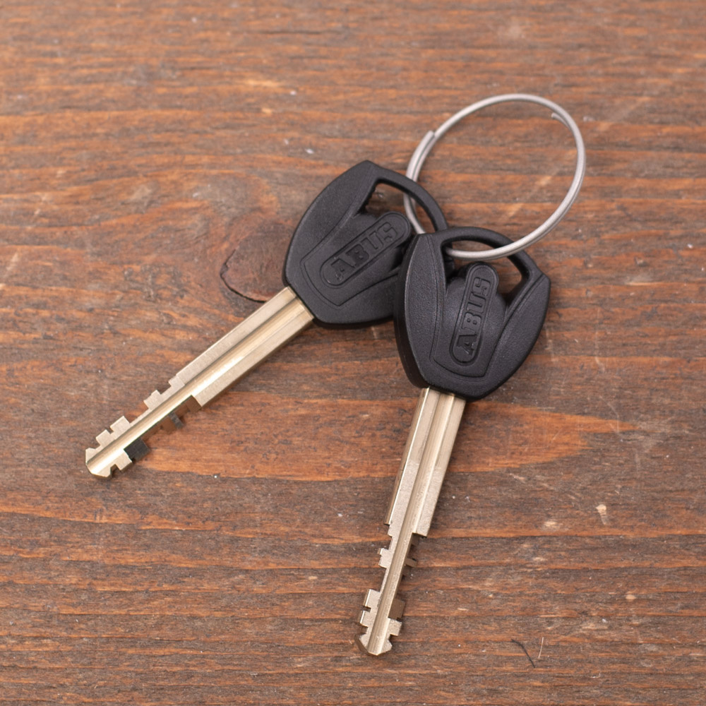 Bij dit slot ontvangt u tevens een ABUS Code Card. Dit slot kan ook gelijksluitend besteld worden (zie het bestelmenu rechtsboven). Hiermee kunt u verschillende sloten of meerdere sloten van hetzelfde type met één sleutel bedienen. Houdt u er rekening mee dat de levertijd van gelijksluitende sloten 10 tot 15 werkdagen kan duren en dat een gelijksluitende uitvoering een iets hogere prijs heeft. Wilt u een gelijksluitend slot bestellen? Vul dan in het opmerkingenveld onderaan in de winkelmand het sleutelnummer in.