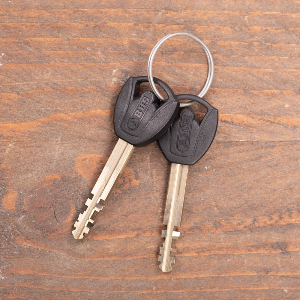 Het slot komt met twee sleutels. Ook ontvangt u bij aanschaf een ABUS Code Card voor een extra of vervangende sleutel.
