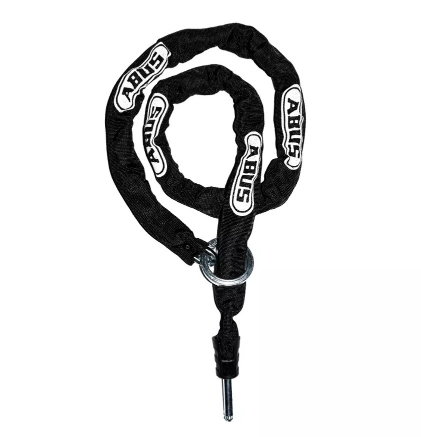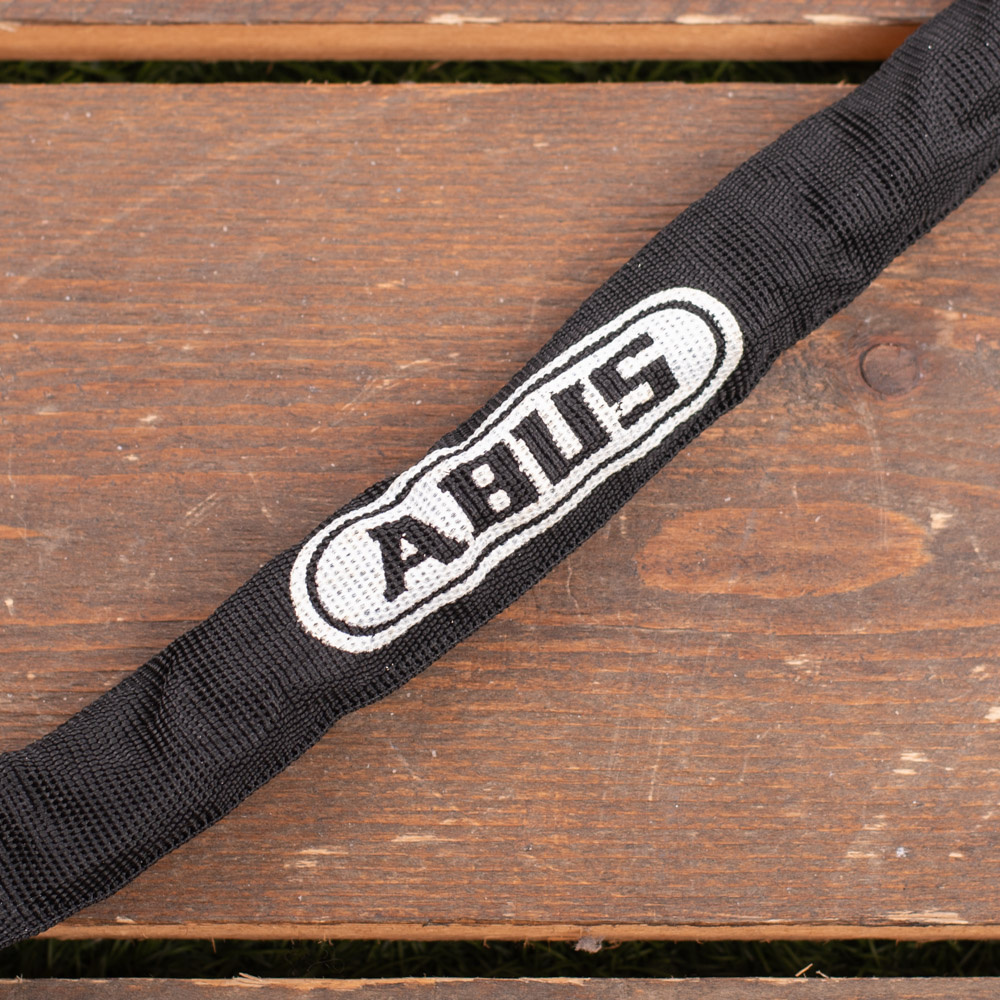 Deze solide ABUS insteekketting heeft vierkante schakels met een dikte van 6 mm, gemaakt van gehard speciaal staal. De ketting heeft een lengte van 130 centimeter en wordt beschermd door een stevige, zwarte nylon hoes. Deze hoes zorgt ervoor dat de ketting geen krassen achterlaat op uw fiets.