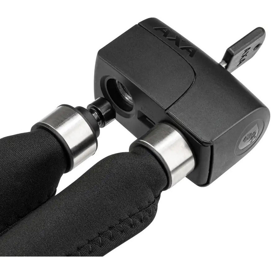 De gehard stalen schakels zijn omhuld met dik en sterk neopreen. Deze zwarte hoes beschermt niet alleen de fiets, maar voelt tevens prettig aan.