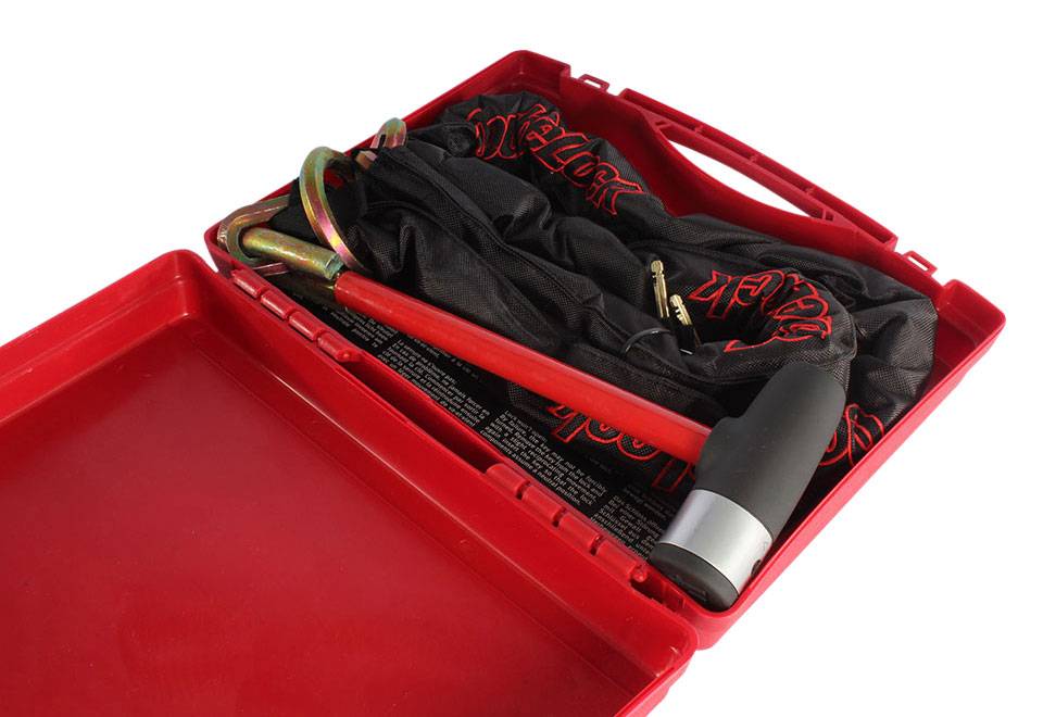 Deze ketting wordt geleverd met vijf sleutels waarvan één met ledlampje. Het slot weegt 5 kg. Het is SCM goedgekeurd (MP030601). En verpakt in een luxe koffer.
