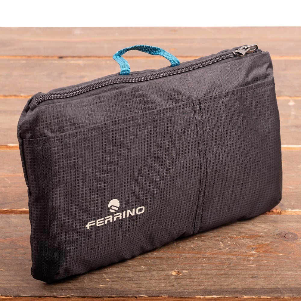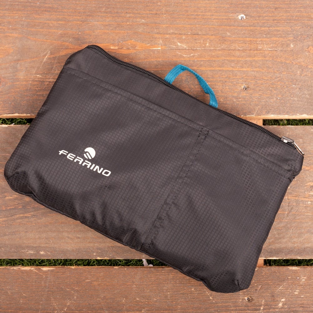 Deze lichtgewicht rugzak van het merk Ferrino heeft een inhoud van 15 liter en is gemaakt van 100% gerecycled PET-polyester. De zwarte tas is voorzien van een extra voorvak en een band voor een trolley. De dagrugzak is opvouwbaar en is daardoor gemakkelijk mee te nemen in de bagage, als extra tas voor onderweg.