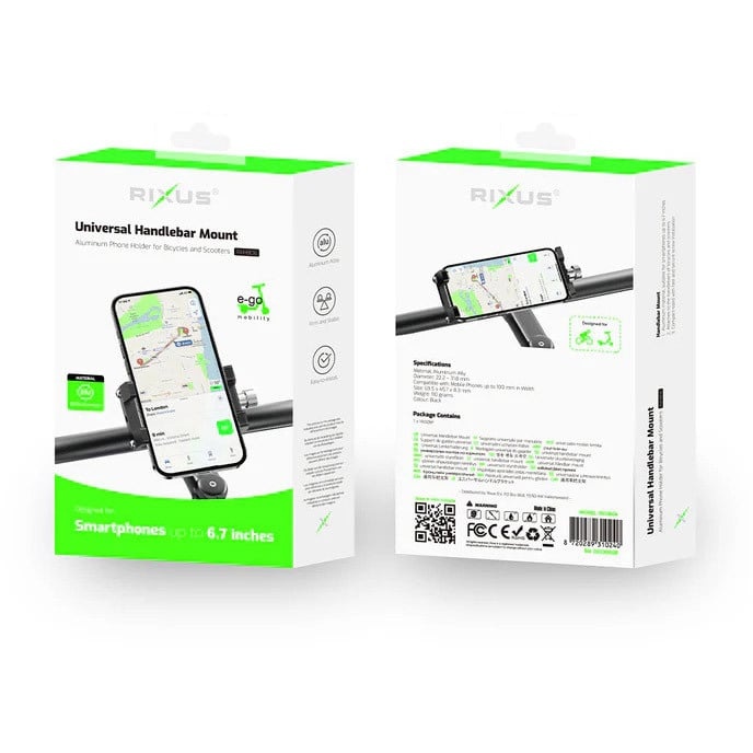 Voortaan leest u de fietsroute af van uw telefoon met deze handige telefoonhouder! De universele telefoonhouder van het merk Rixus bevestigt u op het stuur van uw fiets of elektrische step en is geschikt voor schermen tot 6.7 inch.