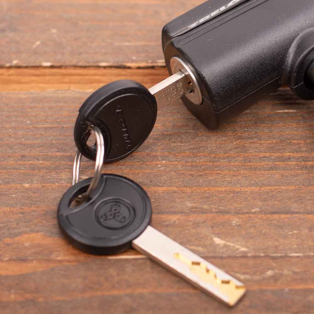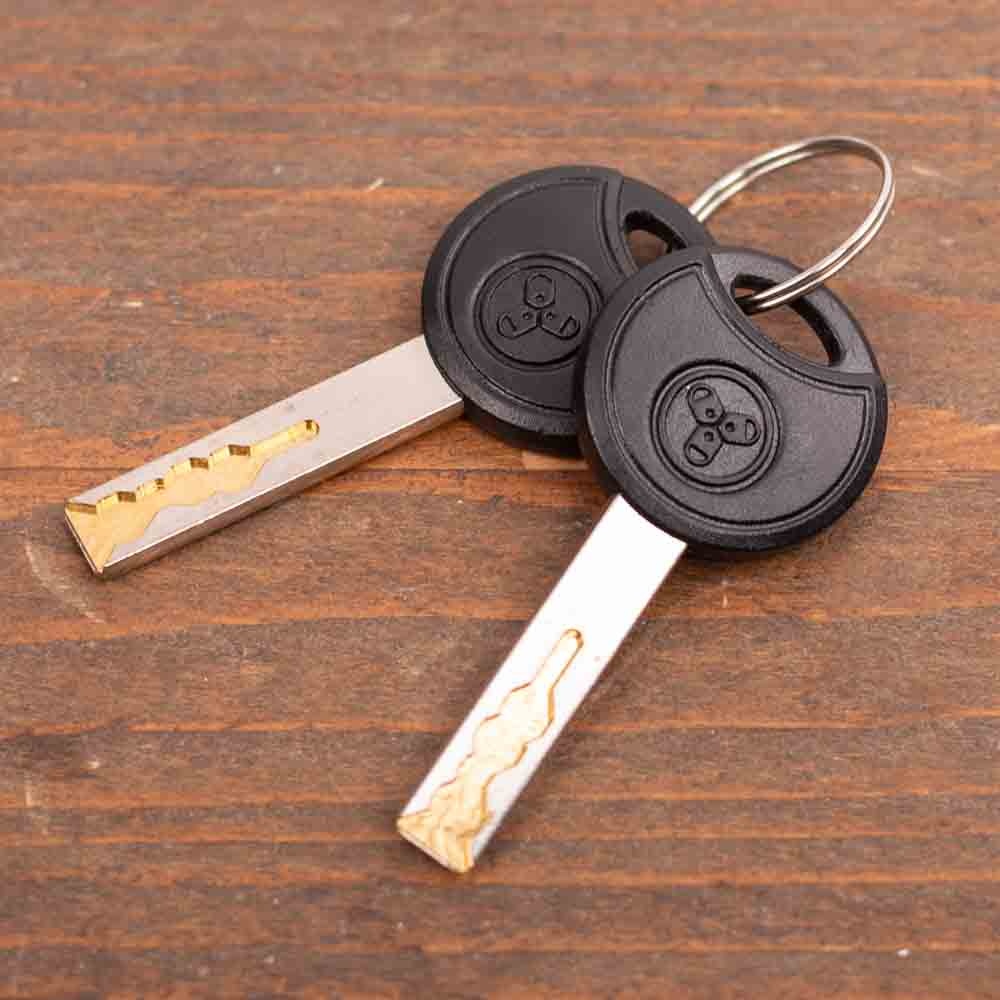 - Het slot wordt geleverd met twee symmetrische sleutels. Als u een sleutel kwijt bent, kunt u gemakkelijk via de sleutelservice een nieuwe sleutel bestellen.
