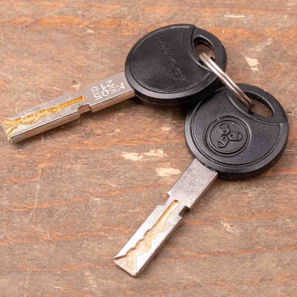 - Het slot wordt geleverd met twee symmetrische sleutels. Sleutel kwijt? Bestel dan gemakkelijk via de sleutelservice een nieuwe.