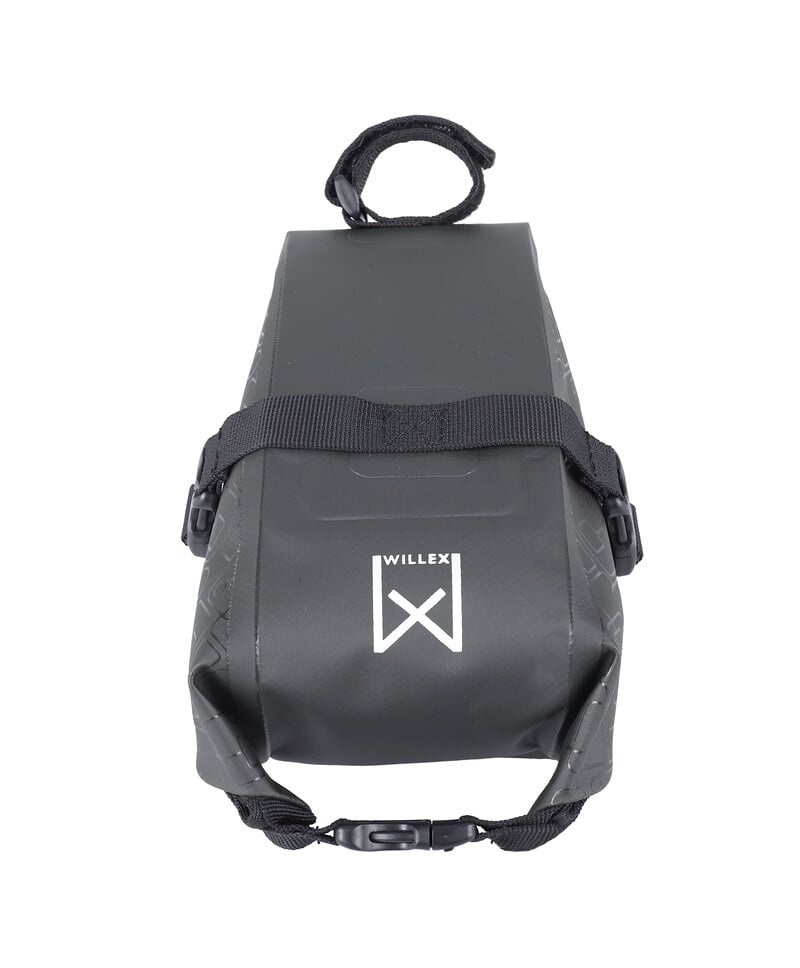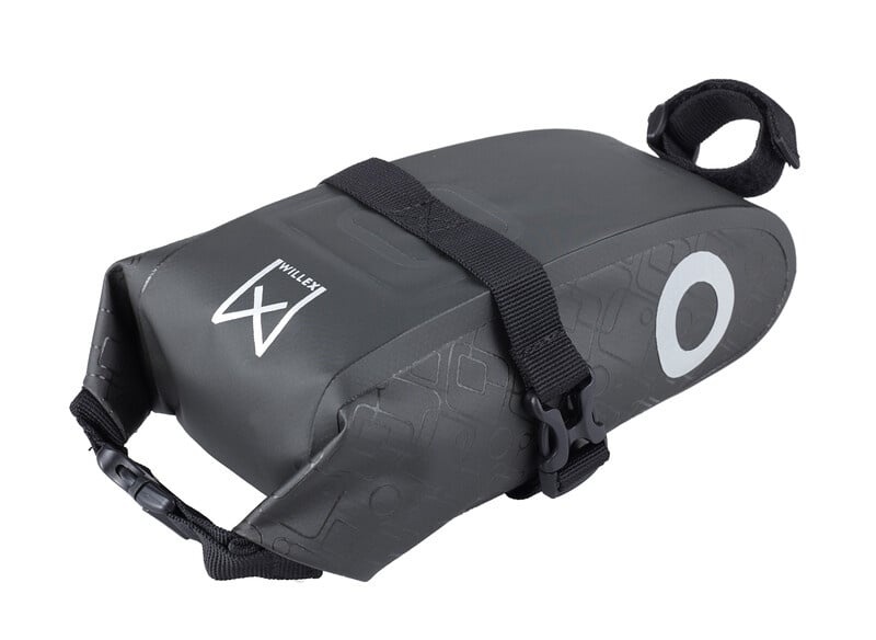 Deze sportieve, verstevigde zadeltas van het Belgische merk Willex heeft een inhoud van 1,5 liter en is uitgevoerd in het donkergroen (bijna zwart). De zadeltas is waterdicht en voorzien van een rolsluiting en reflecterende bedrukking. De tas is ideaal voor het meenemen van een reserveband, fietsgereedschap of een (ketting)slot.